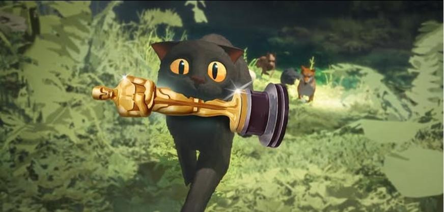 The cat notices a fish that got away from a pack of dogs that were also catching fish. The fish flops in the grass and the cat manages to snatch it before the dogs notice. This triggers a wild chase through the forest, with the cat running for its life and losing the fish—probably its only meal in days—in the process. It then hides in the bushes when suddenly the dogs turn and run the other way as in retreating from something they fear, followed by a herd of deer frantically rushing out of the forest. Confused and scared while trying to dodge the herd of deer’s hooves, the cat quickly realizes that a much bigger threat is coming. Right after, water bursts forth in large amounts, flooding the forest and rapidly submerging everything it comes into contact with.