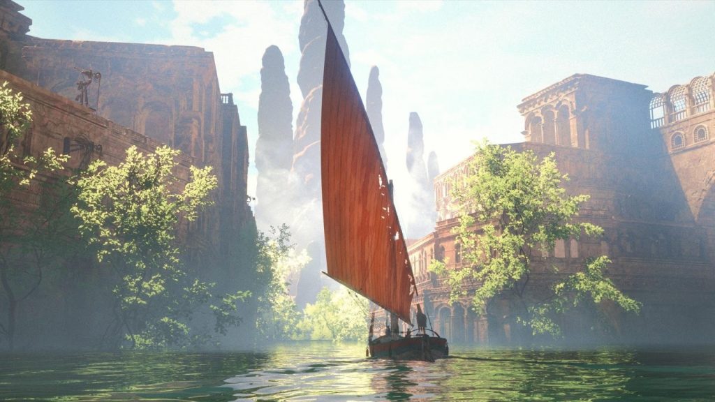 While watching the film, Flow will keep the viewer guessing about many of its aspects. It is set in an unspecified part of the Earth (or whatever planet it takes place on), in a time period that is not made clear (could be the past, present, or the future), with no humans to be seen. From the abandoned monuments and ruins, the viewers theorized that the film takes place in a post-apocalyptic world, where the only creatures left are animals in their natural habitats, and where humans have gone extinct, leaving their creations behind.
