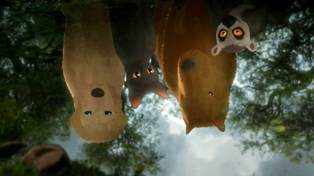 In terms of visuals, Flow is animated in a way that differs from our usual expectations. The animation style is reminiscent of a stylistic watercolor painting—the movements flow smoothly and beautifully from one scene to another. It is animated in three dimensions, with the shots resembling shaky handheld footage. Each scene is visually pleasing and soothing with huge amounts of detail. In most animated films with animal characters, the animals act as human personification, as if they are people in animal form. Meanwhile, the animation in Flow is tuned to genuine animal behavior and emotion; every subtle movement reflects the animal itself rather than serving as an easy metaphor for human traits. Every animal in the film mirrors its real-world counterpart in proportion, design, expression, and movement, along with finely crafted environmental details, such as lighting that elevate the animated journey as a whole.