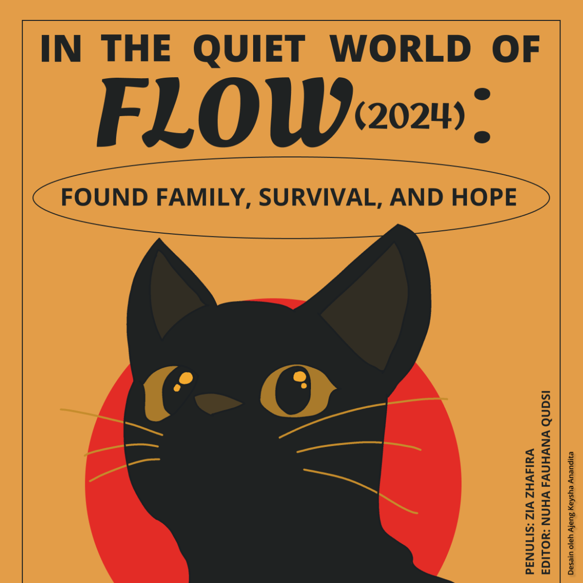 Like clockwork, the whole forest quickly disappeared, drowned by the floodwaters with no mercy. Panicking, the black cat keeps reaching for higher ground, trying to protect itself from the rising water. It sad meows, along with the rising floodwaters almost reaching the cat’s ears and nearly drowning it, keep the viewer on edge by leading them to believe the cat will not survive. Then suddenly, a small sailboat flows by, slowly but surely, into the cat’s direction. The cat quickly jumps onto the boat, only to find that there was already an occupant: another animal, one the cat has probably never seen before. The initial passenger, a capybara, remains still and unbothered even as the cat joins it in the boat.